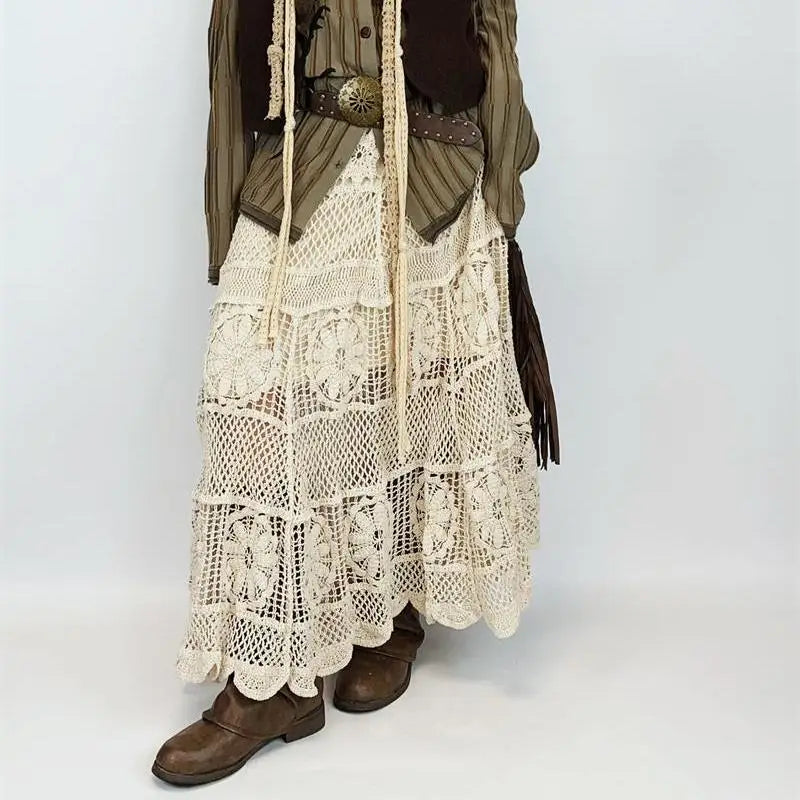 BC Boho Vintage Hollow Out Hook Flower Y2k High Waist Maxi Skirts
