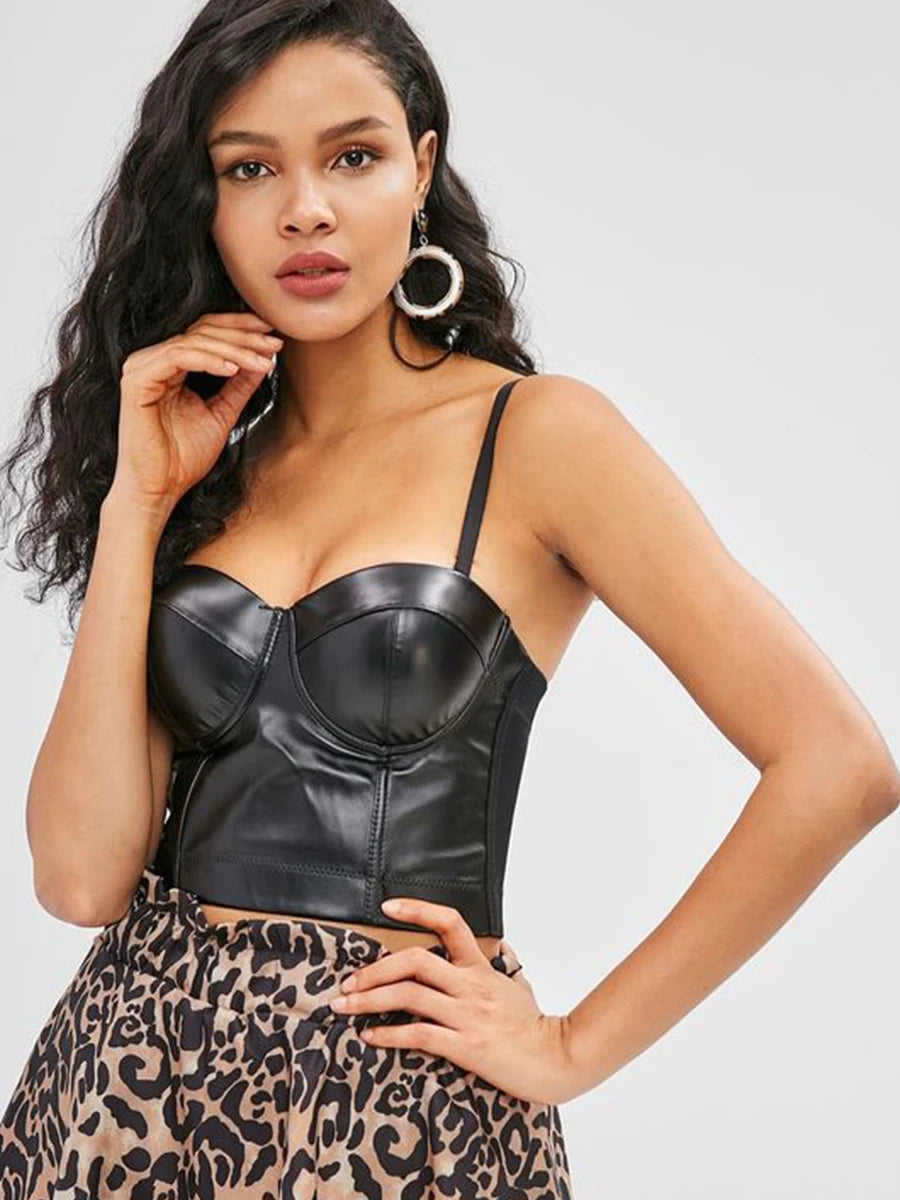 BC Stretch PU Leather Look Bustier Crop Top Corset