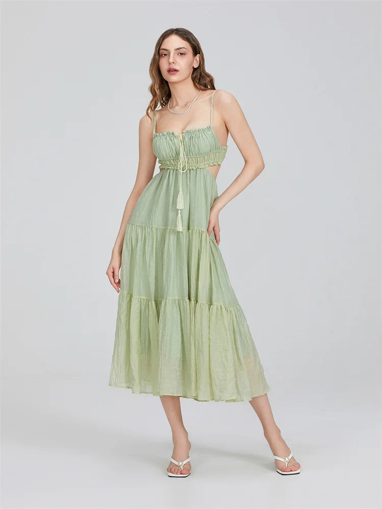 Patty Boho Flowy Spaghetti Strap Cut Out Backless Ruffle A-line Dress